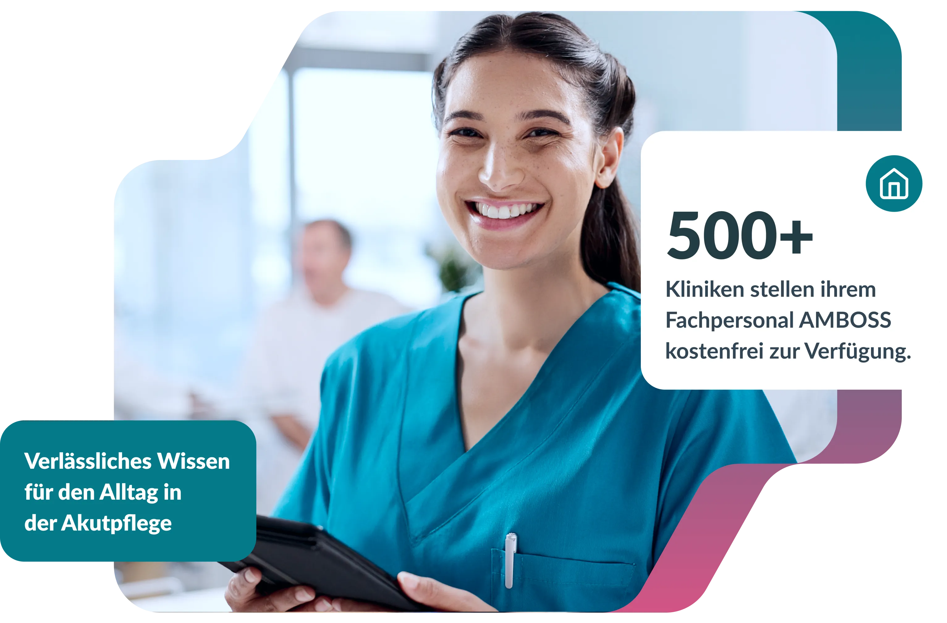 Viele Einrichtungen stellen ihren Pflegefachpersonen AMBOSS über eine Kliniklizenz kostenfrei zur Verfügung.
