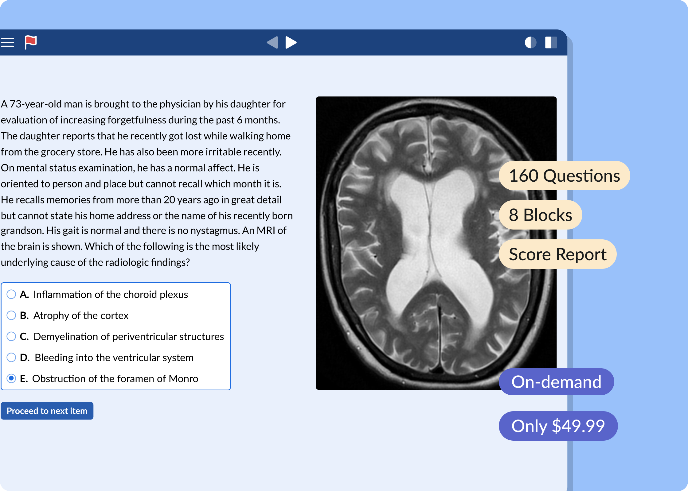 ⏰ Warm up for exam day with 160 exam-style questions presented in the NBME®’s official timed format.